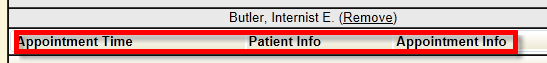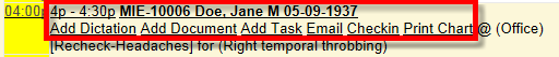 SchAppointment Title Color Background color of the 1 ^st line of the appointment – the "title" showing pt. name, DOB, time.